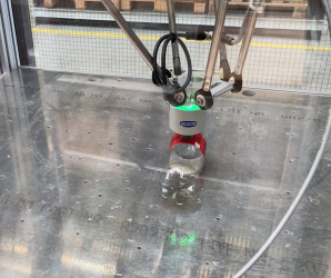 In this customer application, automated deposit bottle sorting was to be simulated. In addition to a Cobot pump, the Delta robot was also equipped with a camera that enabled it to visually recognize the correct bottle.