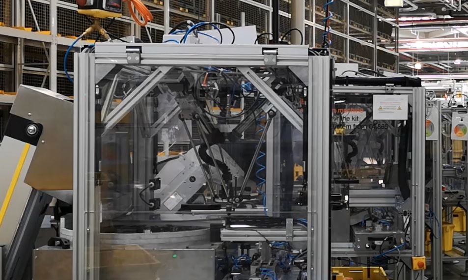 In the application, plastic components are gripped by the Delta robot, specifically sucked up and placed in a fixture in which the individual components are joined. The challenge in this application was the precise processing of the camera data. The robot has a pick cycle time of 1-2 seconds. The components are jogged randomly.