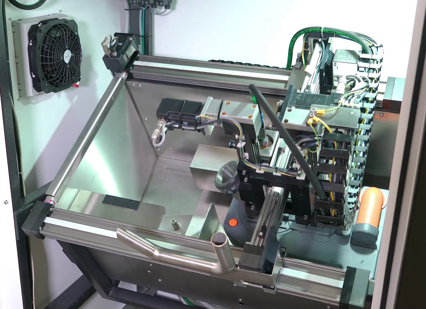 Inside the Camping Butler works an igus linear robot that turns, empties and cleans the cassette. The lid of the cassette gets unlocked and opened by means of a gripper mounted on one of the robot's Z-axes. Connected to a second Z-axis is an attachment which gets placed on the opening of the cassette through which water is filled in. A cogwheel rotates the tub and xyz robot through 180 degrees to empty and rinse the contents of the cassette. The tub then returns to its original position. The cassette is closed again and the flap opens. The camper can remove his cleaned cassette.