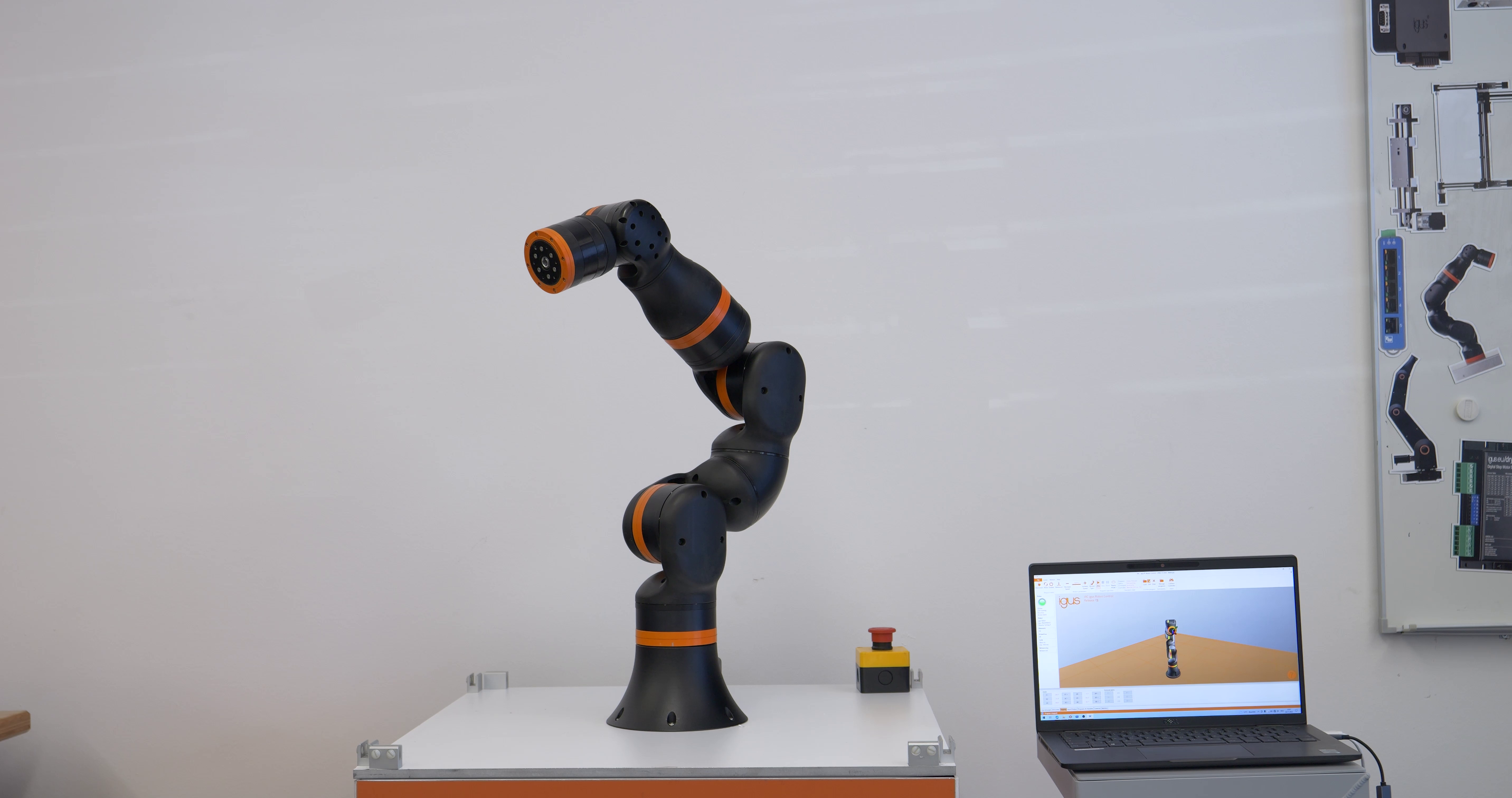 On request, the robot can also be mounted on a drylin® seventh axis. With the igus free igus Robot Control Software, the robot can be easily programmed for the respective application.
